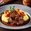 Filet de porc farci à la poire, amandes et fromage en grain, sauce au Brandy