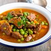 Fricassée de saucisse de gibier servi avec couscous Israélien
