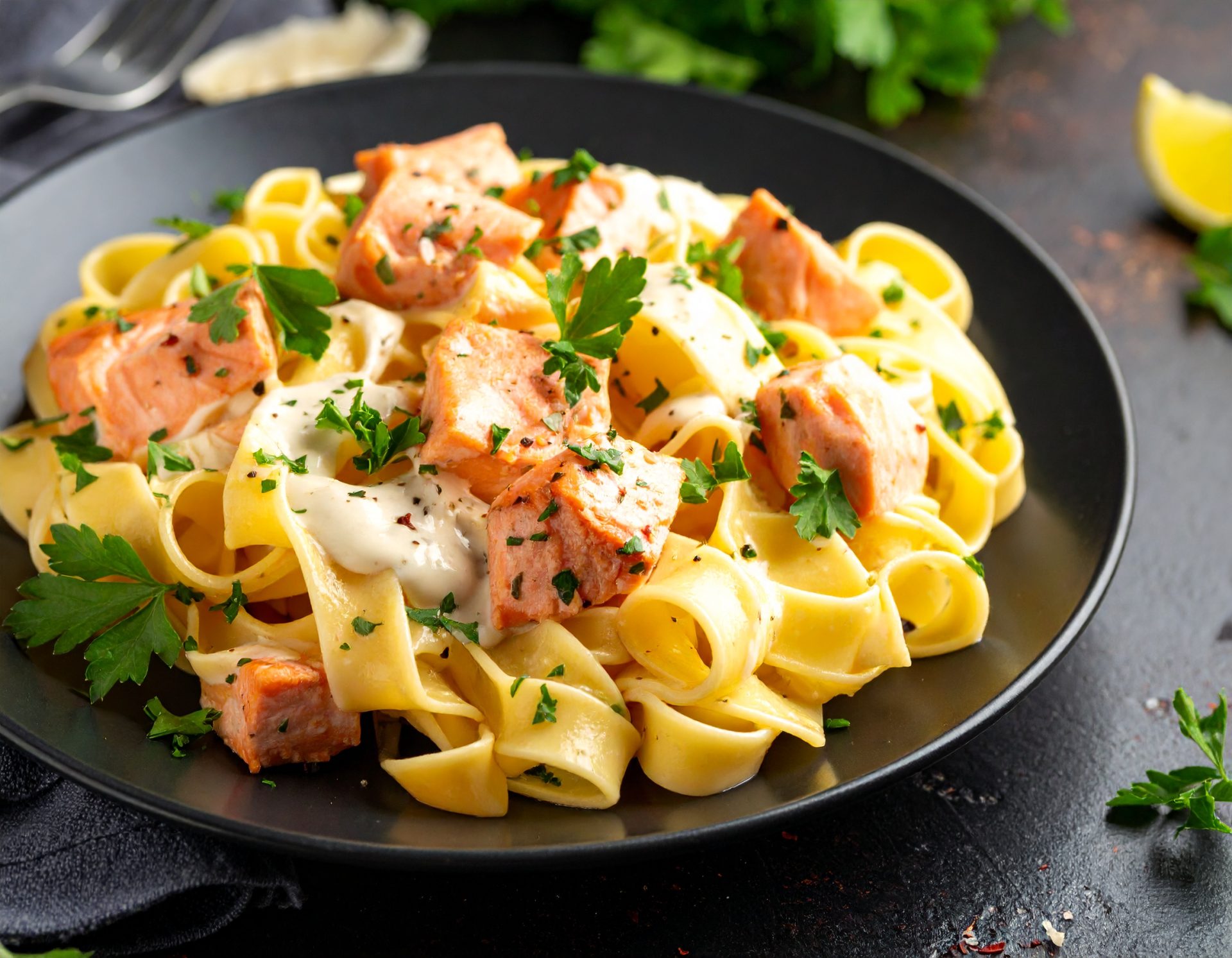 Linguine à la Santa Barbara ‘’Saumon fumé’’, sauce crémeuse au vin blanc et fromage parmesan