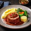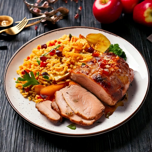 Longe de porc pomme et canneberge accompagnée de riz pilaf et légumes