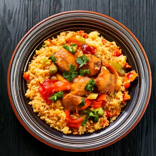 Mijoté de poulet style indien accompagné de couscous perlé et de légumes sautés