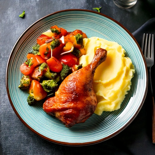 Pilon de poulet Buffalo accompagné d’une purée de pomme de terre et de légumes
